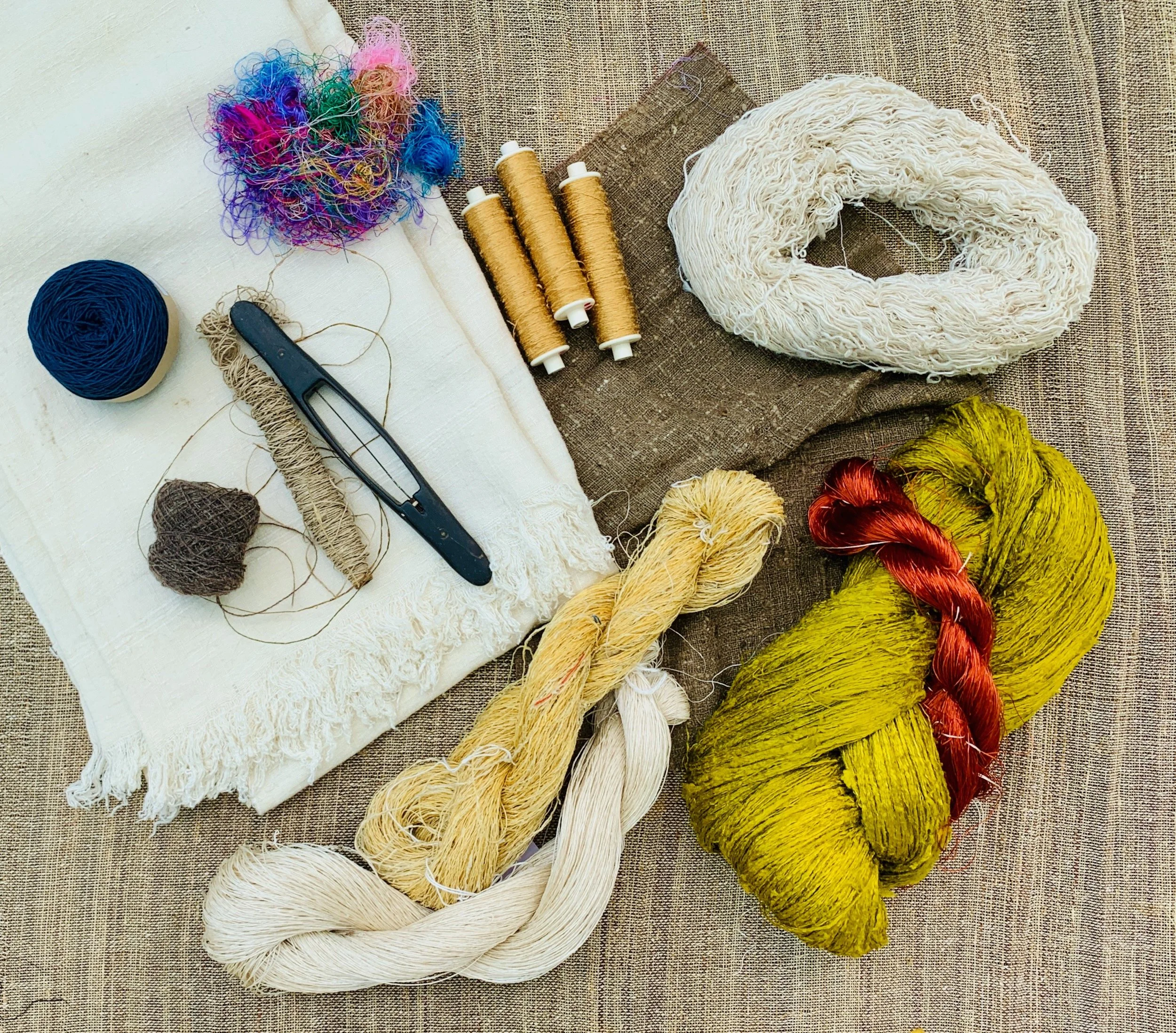 We have everything from yarn to yardage, thrums to dye blanks in silks like tussah, muga, eri, and bombyx, as well as hemp, lotus, wool, cotton and more.