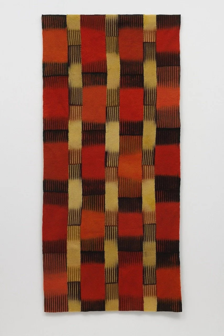 “My work is influenced by the rhythmic and organic patterns found in nature as well as the precision of mathematically perfect geometric shapes. Using hand-painted warps and a variety of conventional and unconventional techniques and materials I explore layers of transparency and illusion and how they intersect within the two-dimensional plane of weaving to create ethereal landscapes.”